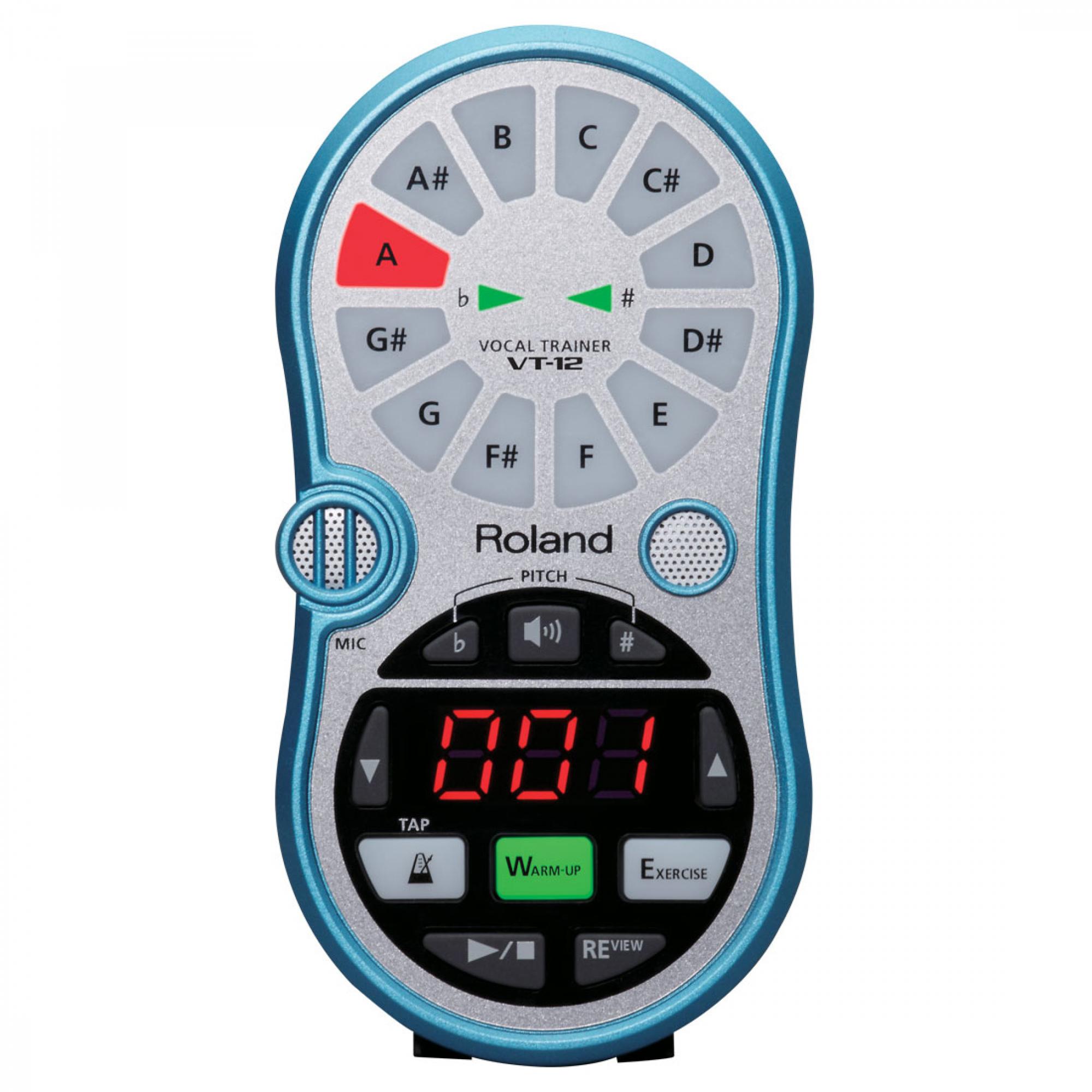 Da escola de música para a sua casa, do estúdio de gravação para o camarim, o VT-12 é o mais novo treinador vocal portátil que cabe no seu bolso. Com exercícios e aquecimentos que irão aprimorar suas técnicas vocais, o VT-12 analisa em tempo real a afinação da sua voz, assim você pode analisar seu progresso enquanto canta. O medidor iluminado exibe a sua afinação e, ainda, detecta duas vozes simultaneamente para o treinamento de duas partes harmônicas em temperamento e entonação iguais. O VT-12 também disponibiliza guias vocais e faixas de apoio baseadas no livro fornecido pela Berklee Press (a divisão de publicações da Faculdade de Música Berklee) e mais de 50 estudos Concone, padrão mundial de lições para vocais clássicos.