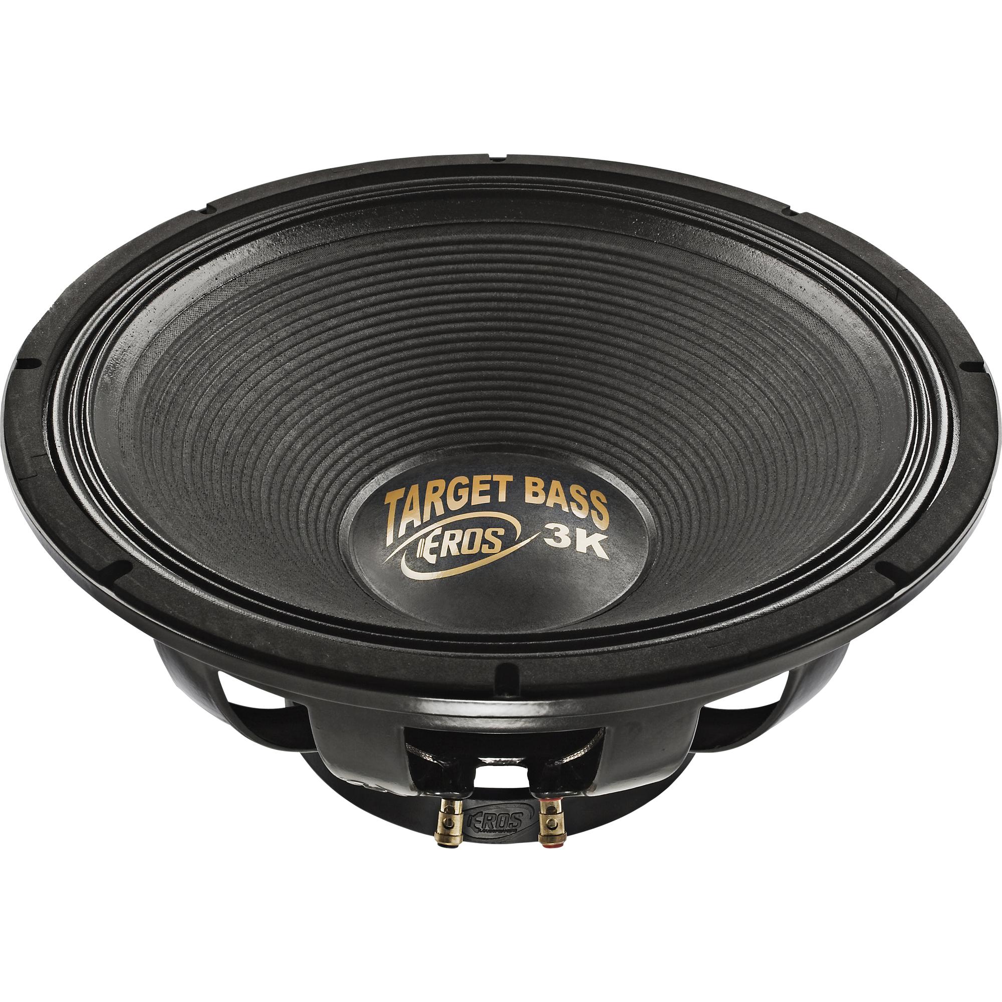 O Alto Falante 18" 1500W RMS TARGET BASS Preto EROS foi projetado para oferecer grave e sub grave com alta potência. As características dos alto-falantes subwoofers da linha Target Bass são: cone reforçado, dupla centragem e borda especial para suportar autoesforço mecânico, sem perda de SPL