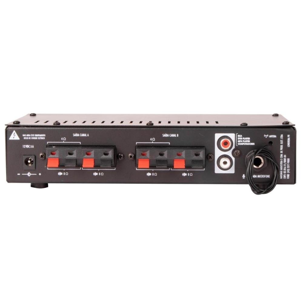 Saídas: Até 4 Caixas de 8 Ohms (1 por canal)