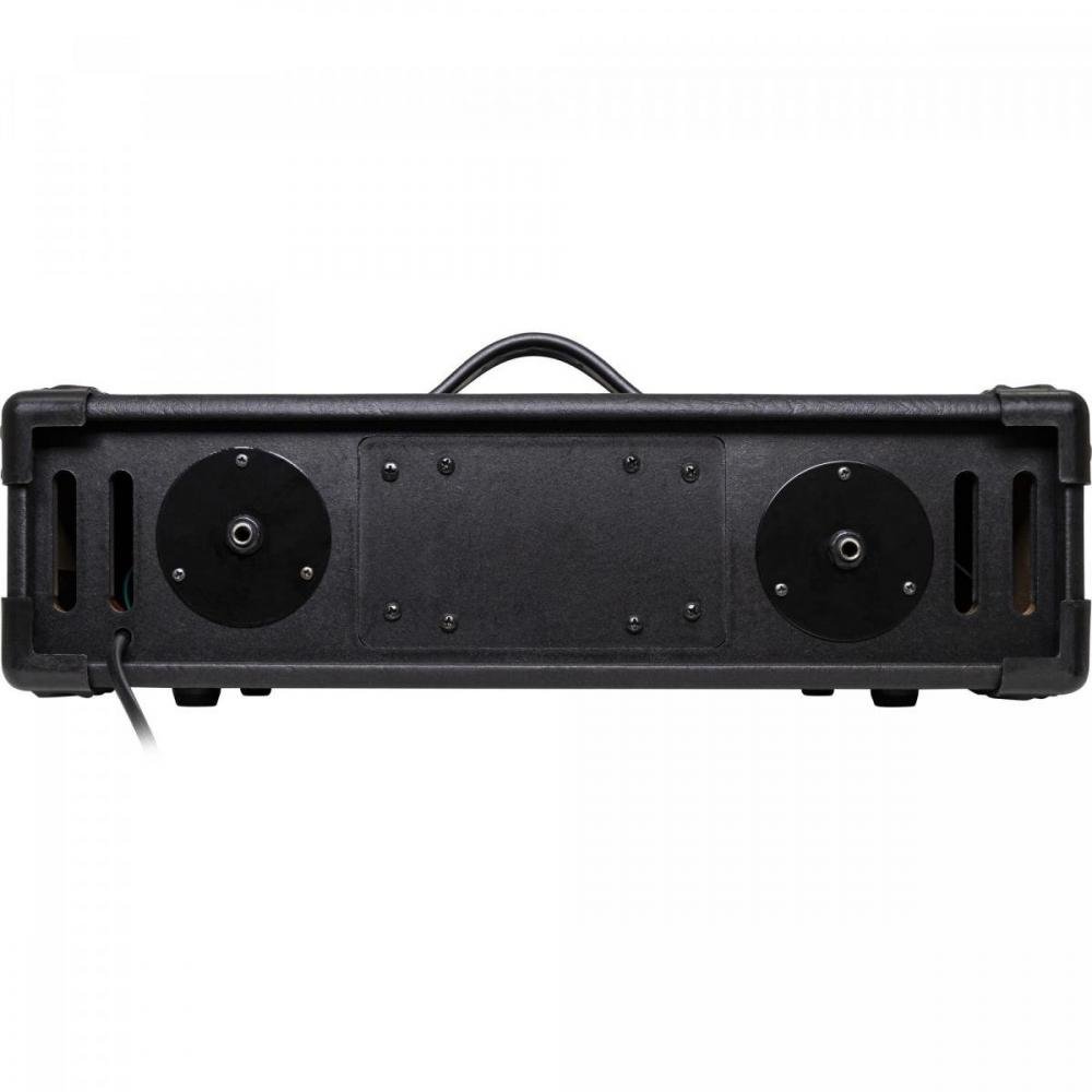 Entradas: 4 de Microfone P10, 5 Linha in P10 e 3 Auxiliar RCA