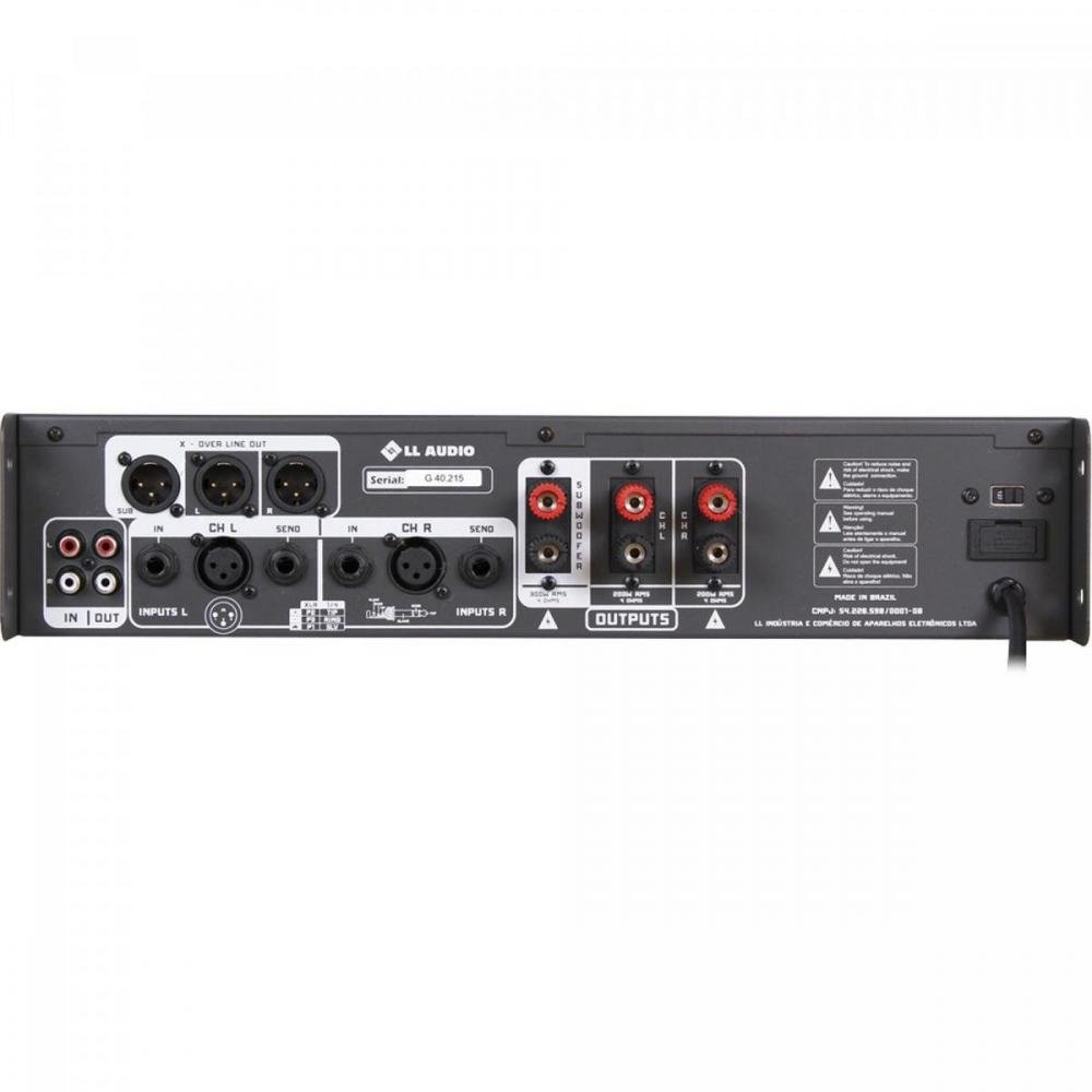 Canais: potência máxima por canal - 2 x 200W RMS + 01 X 300W RMS (Sub)