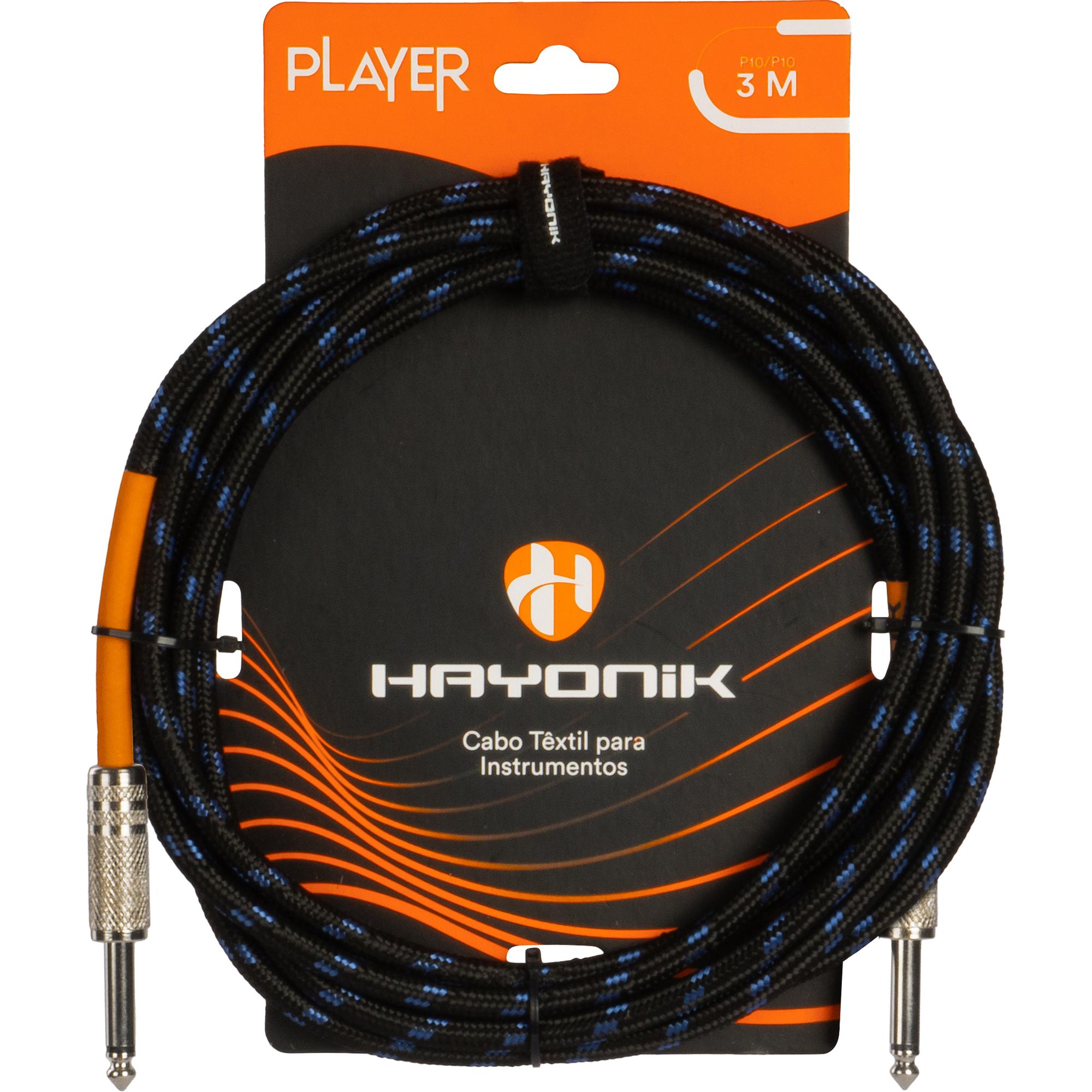 Cabo Para Instrumento Têxtil Hayonik Player P10 3m Preto/Azul