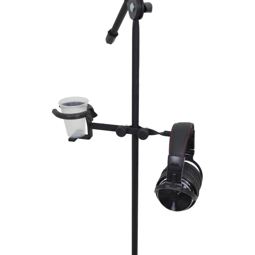 O Clamp Duplo Para Fone/Garrafa C21 é a solução multifuncional para Headphones, Headsets e acessórios, além de oferecer suporte para copos, latinhas ou garrafas. Prático e versátil, este modelo se adapta a suportes e pedestais, garantindo organização e versatilidade.