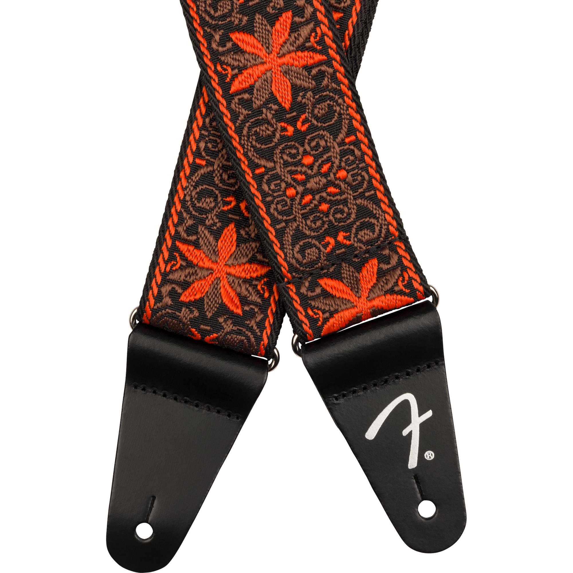 A Correia Fender Pasadena Woven Orange Wallflower é um acessório elegante e funcional projetado para guitarristas e baixistas. Esta correia apresenta um design exclusivo, com uma estampa floral laranja vibrante em um fundo escuro.