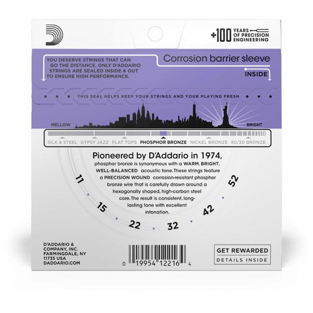 Encordoamento Violão Aço .011-.052 Phosphor Bronze EJ26 D'Addario