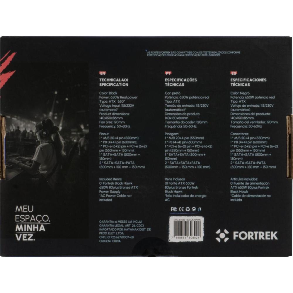 • Proteção: OVP (Over Voltage Protection), UVP (Under Voltage Protection), SCP (Short Circuit Protection), OTP (Over Temperature Protection), OPP (Over Power Protection), OCP (Over Current Protection), e OPP (Over Power Protection)