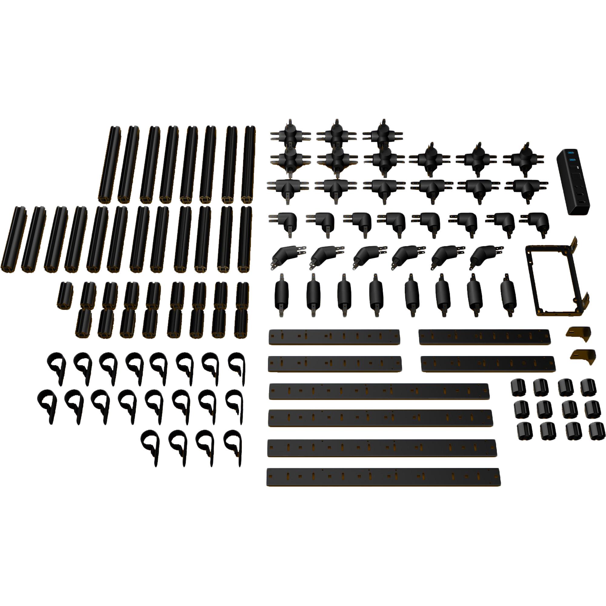 Além de vários conectores, tubos de alumínio e cotovelos, o kit conta com uma bandeja para a fonte e um painel I/O para as portas USB e conectores de áudio que podem ser frontais, ou em qualquer outra região que o usuário preferir. As ligações são feitas por parafusos para garantir segurança máxima e usuários avançados que quiserem podem comprar mais de um kit e montar chassis realmente elaborados.