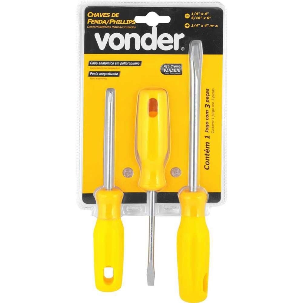 Jogo de Chaves de Fenda/Phillips Com 3 Peças Vonder