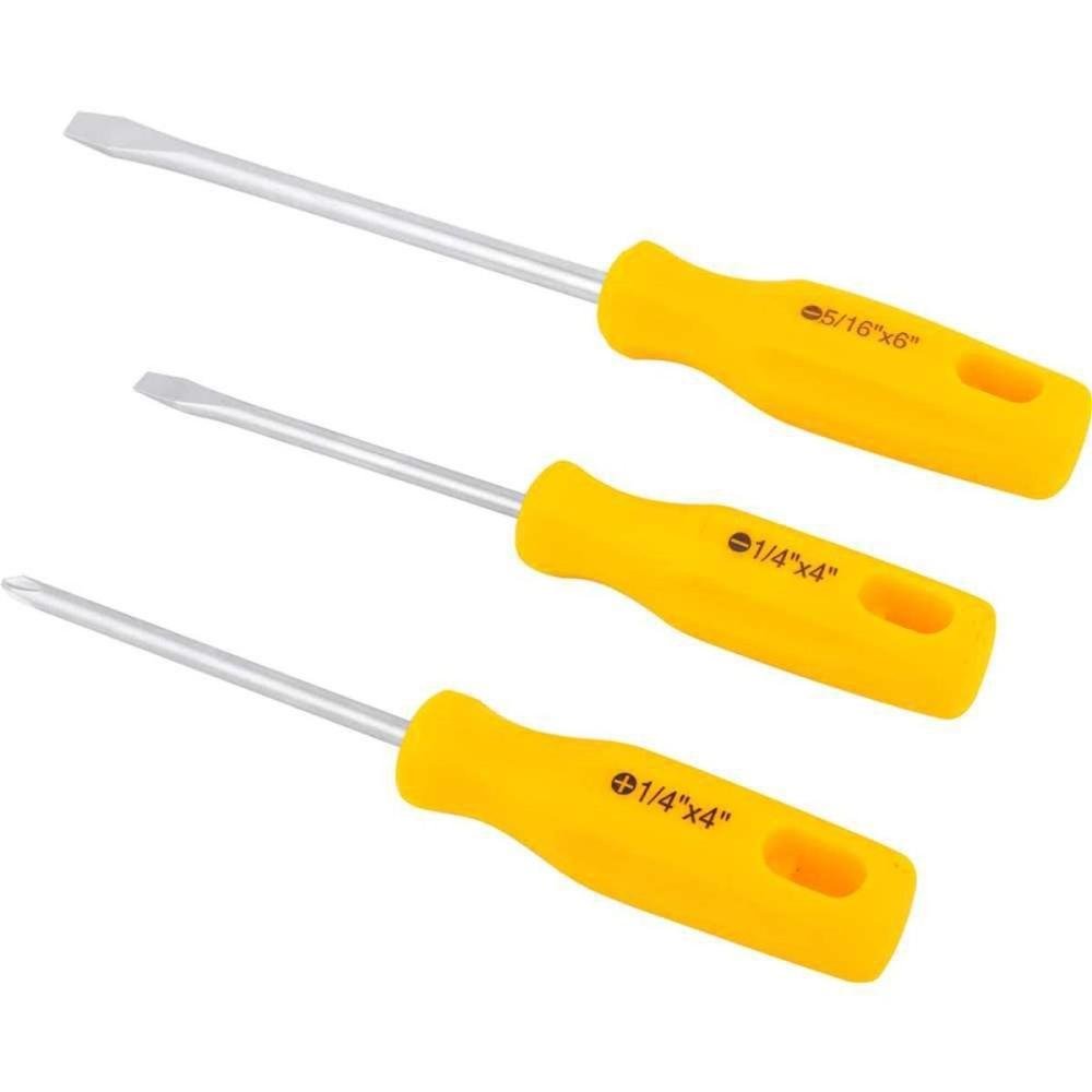 O Jogo de Chaves de Fenda/Phillips Com 3 Peças é um conjunto de ferramentas resistentes e duráveis, indicado especialmente para fixar e soltar parafusos fenda/phillips, além de ser feito de aço cromo vanádio. Com o acabamento niquelado para proteção contra oxidação/corrosão, este modelo conta com ponta magnetizada, o que facilita a colocação e retirada de parafusos em locais de difícil acesso. O cabo anatômico em polipropileno garante conforto ao operador.