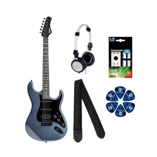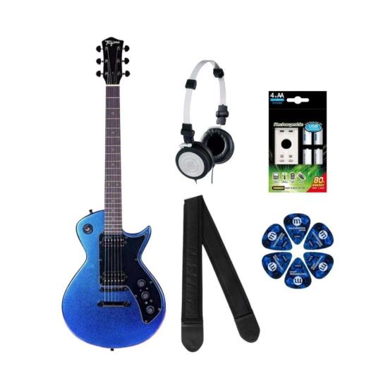 Controles: Chave 5 posições, 1 volume, 2 tonalidade, Delay, Chorus, Reverb, Overdrive e Distortion + Saída para fone de ouvido / Entrada de Auxiliar