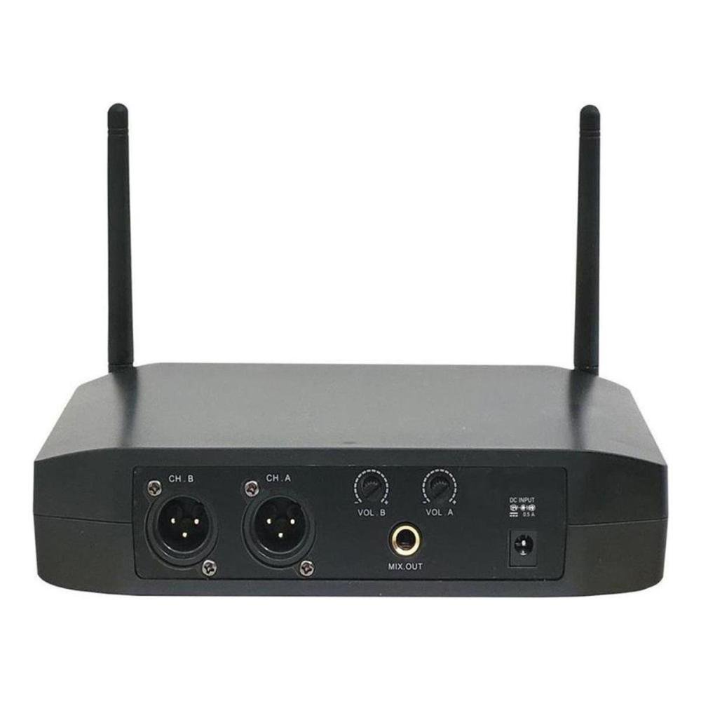 Acessórios: 01 receptor modelo LRX, 02 microfones de mão modelo LHT, 01 cabo p10/p10 e 01 fonte bivolt