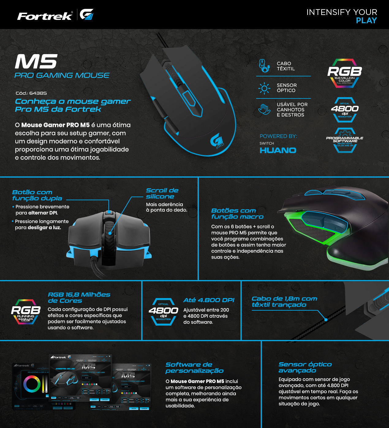 Possuindo design ergonômico e precisão nos movimentos e software de personalização, buscando proporcionar experiência e usabilidade.